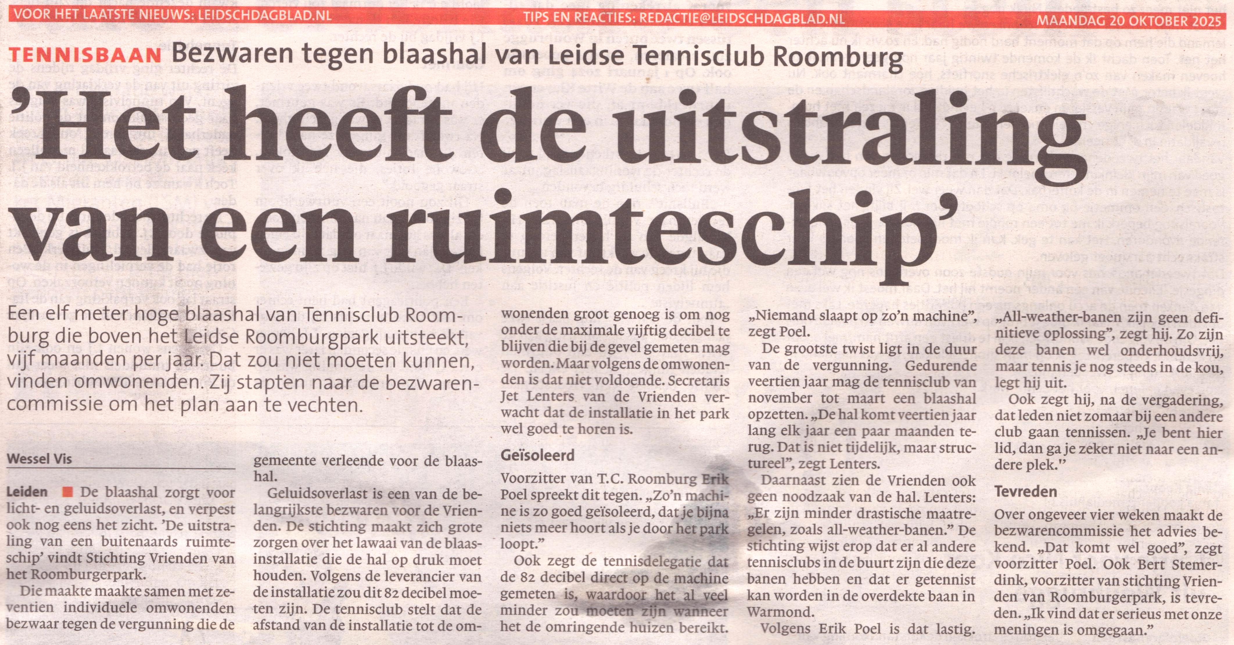 Het heeft de uitstraling van een ruimteschip Leidsch Dagblad 20 oktober 2025. Lees het artikel via deze link. Klik op de afbeelding om het artikel te lezen
