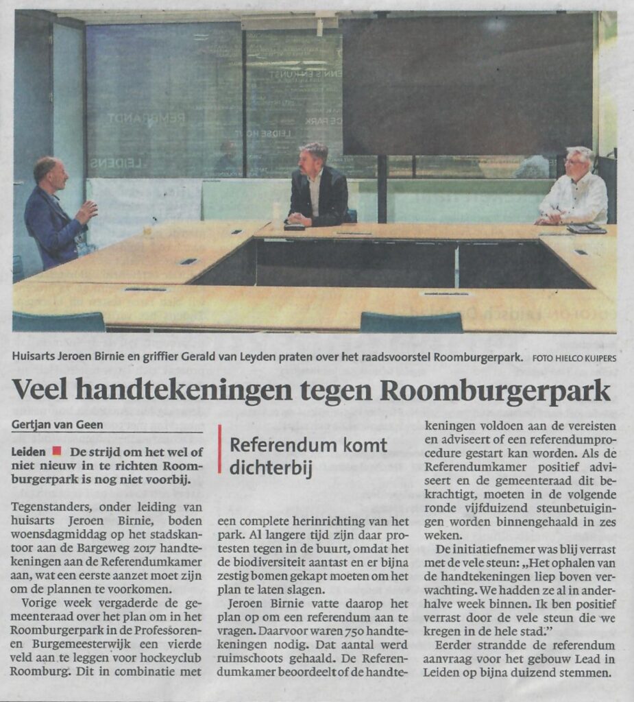 Ik zou als alternatieve titel willen voorstellen: “Veel handtekeningen voor Roomburgerpark”.